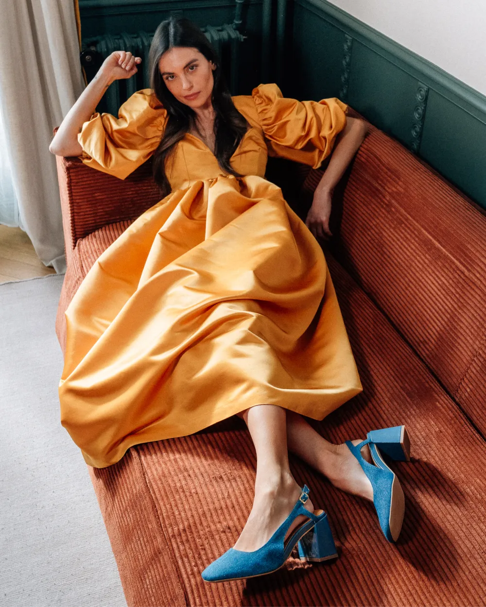 Slingbacks escarpins - cuir vert et bleu azur